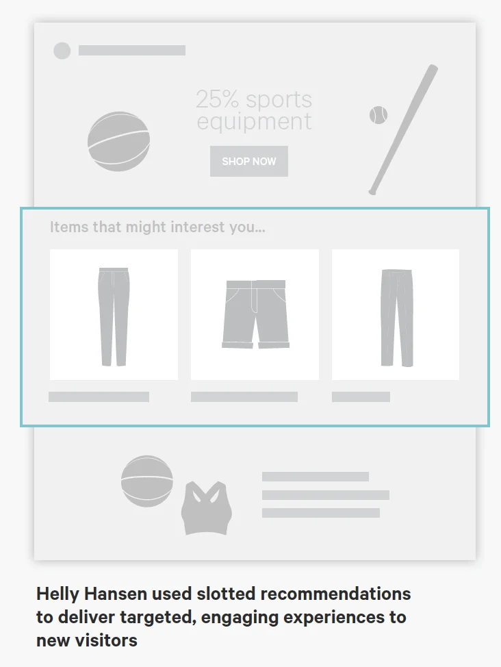 - Experience: Personalized user experiences across multiple interactions and user flows. Examples: Email campaigns, landing pages, advanced messaging (i.e. C2C chat) or conversational interfaces, larger user flows and content-intensive optimizations (localization).