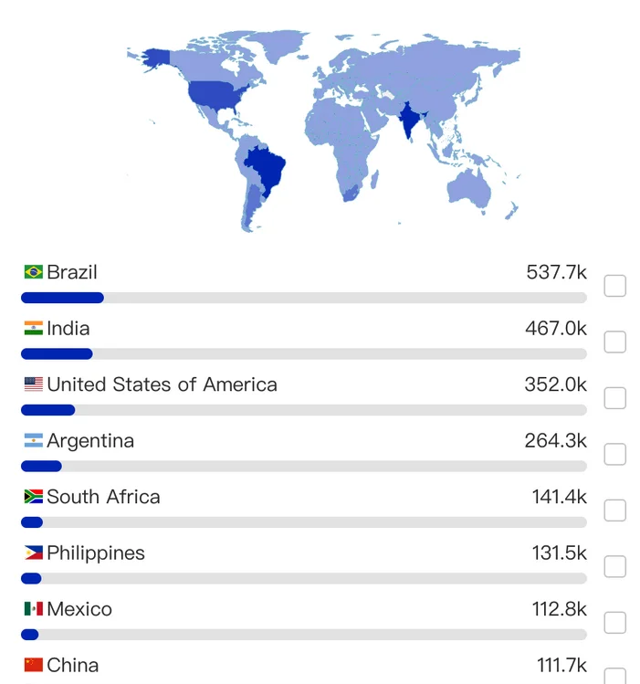 The Chinese security firm XLab found the Kimwolf botnet had enslaved between 1.8 and 2 million devices, with heavy concentrations in Brazil, India, The United States of America and Argentina. Image: blog.xLab.qianxin.com